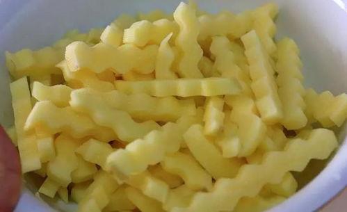 2. 切法:将土豆切成细长的条状,厚度要均匀,这样炸出来的土豆才会外酥里嫩。